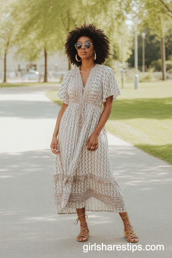 Embrace effortless boho-chic with a flowing Bohemian maxi dress paired with statement gold hoop earrings. The lightweight fabric drapes beautifully, offering comfort and style, while the earthy tones or vibrant prints capture that free-spirited vibe. Gold hoops add a touch of glam, elevating the look from daytime markets to sunset cocktails. Perfect for festivals or brunch dates, this combo is a timeless nod to relaxed elegance. Layer with a floppy hat and leather sandals for the ultimate wanderlust aesthetic.